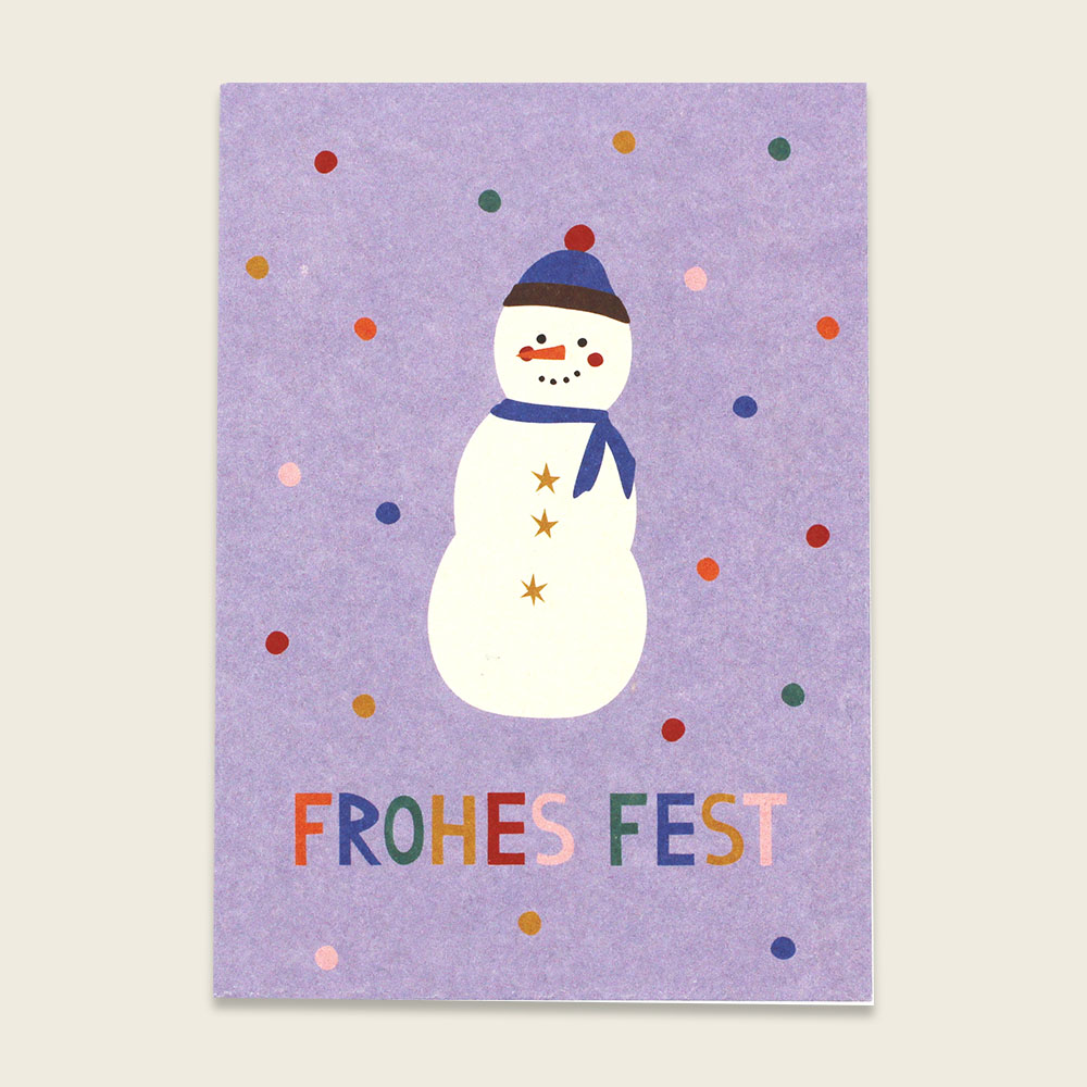 Ava&Yves Postkarte Schneemann, bunt – Frohes Fest