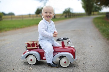 Entdecken Sie das Rutschauto Speedster Feuerwehr im Retro-Look. Schon ab einem Jahr kann Ihr Kind imaginäre Feuer löschen und stolz am Steuer seines ersten Fahrzeugs sitzen!