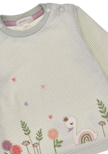 – tolle Stickerei ‚Blumenwiese‘ mit Organzablüten und einem romantischen Schwan