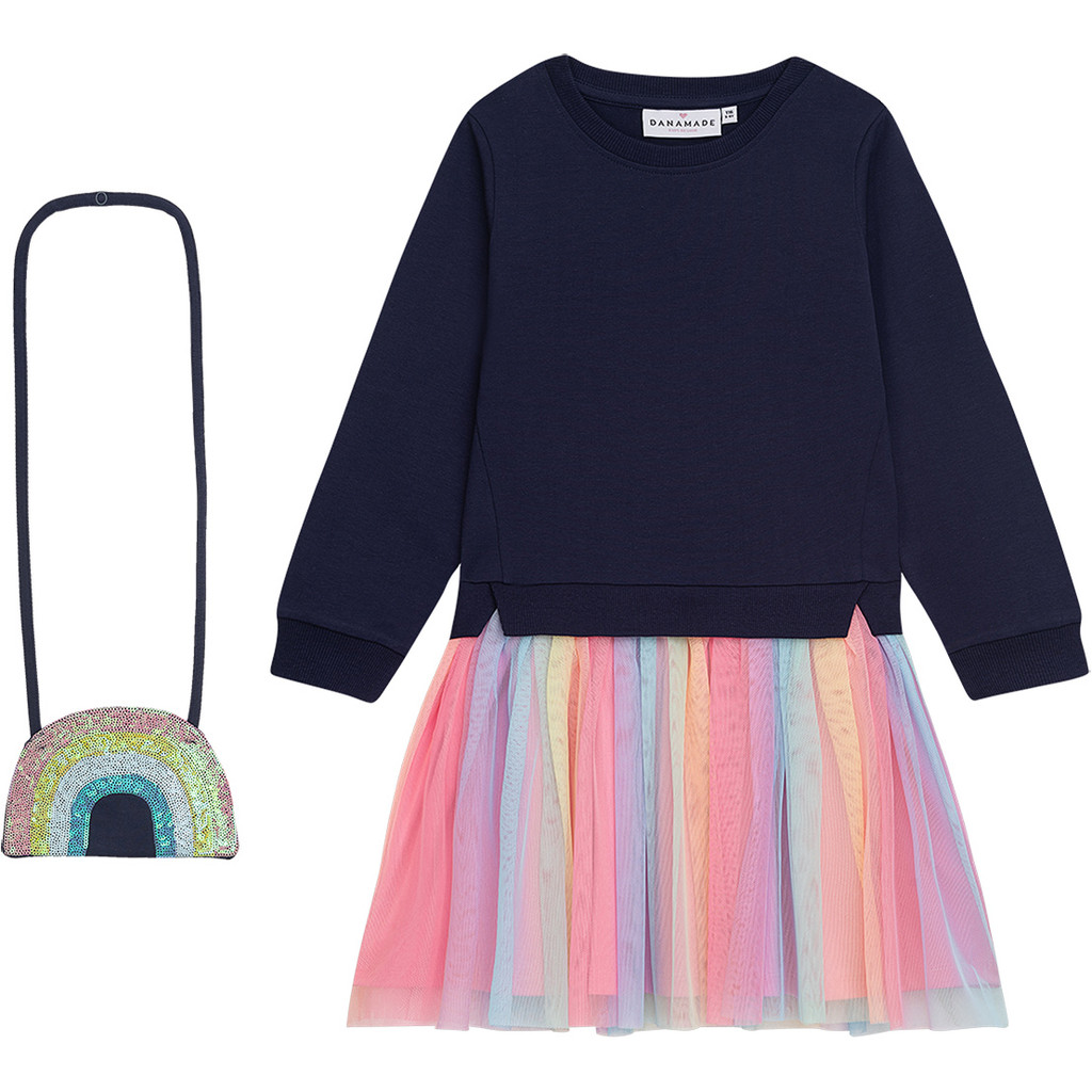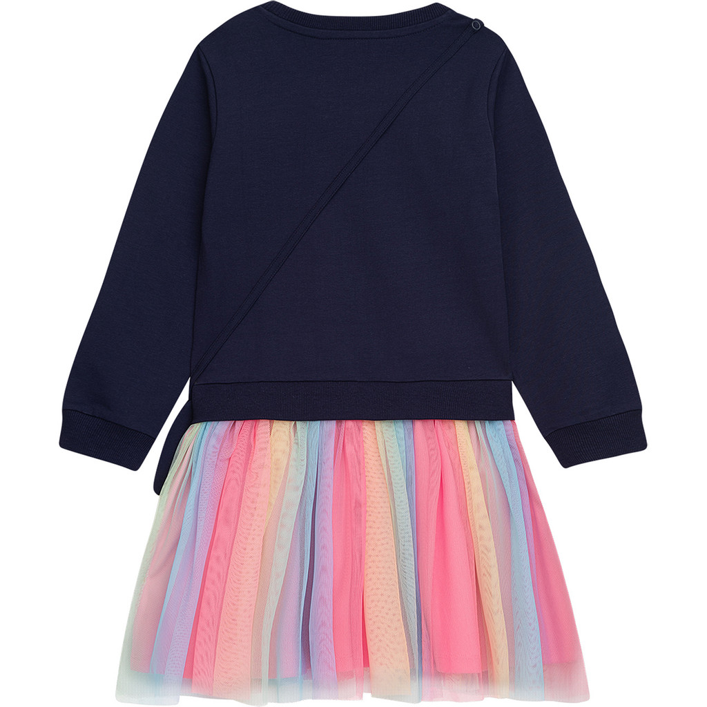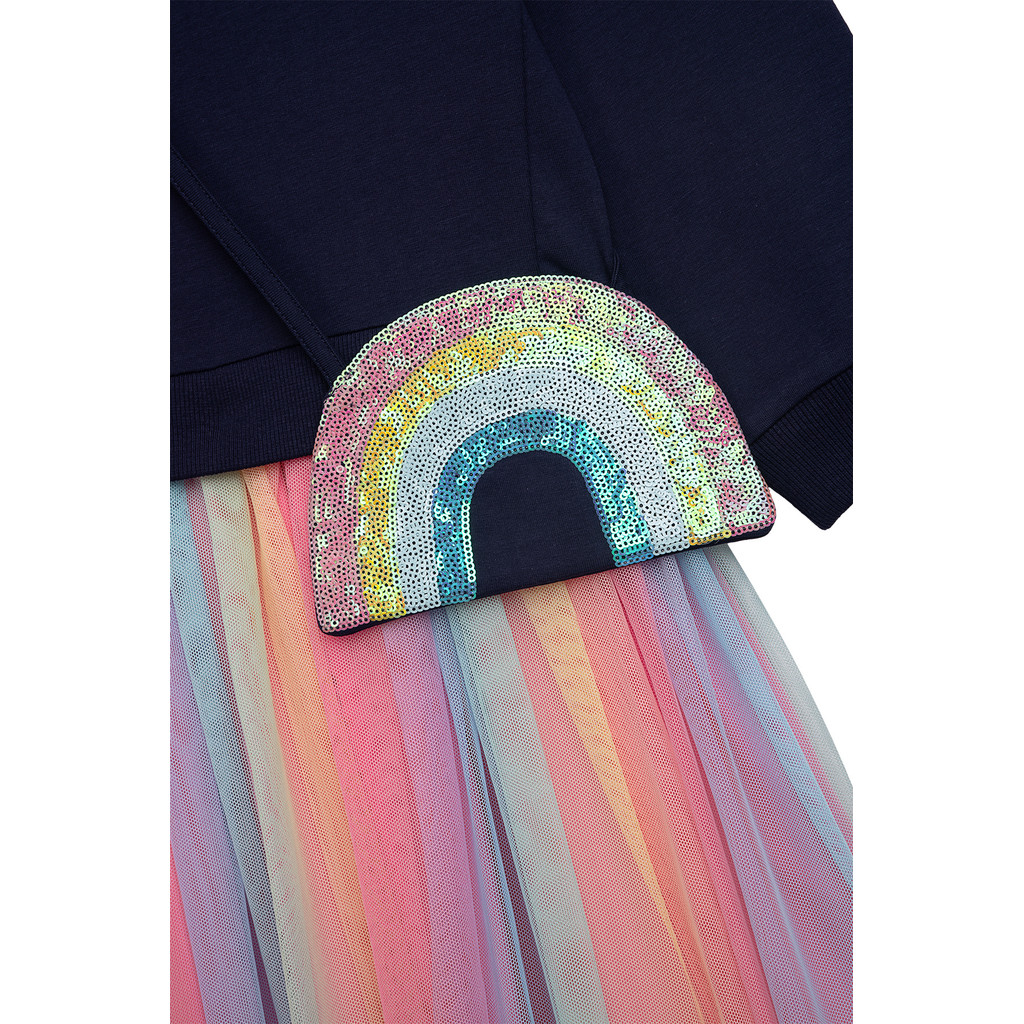 Oberteil in Sweatshirtoptik angesetzter Tüllrock in Regenbogenfarben
