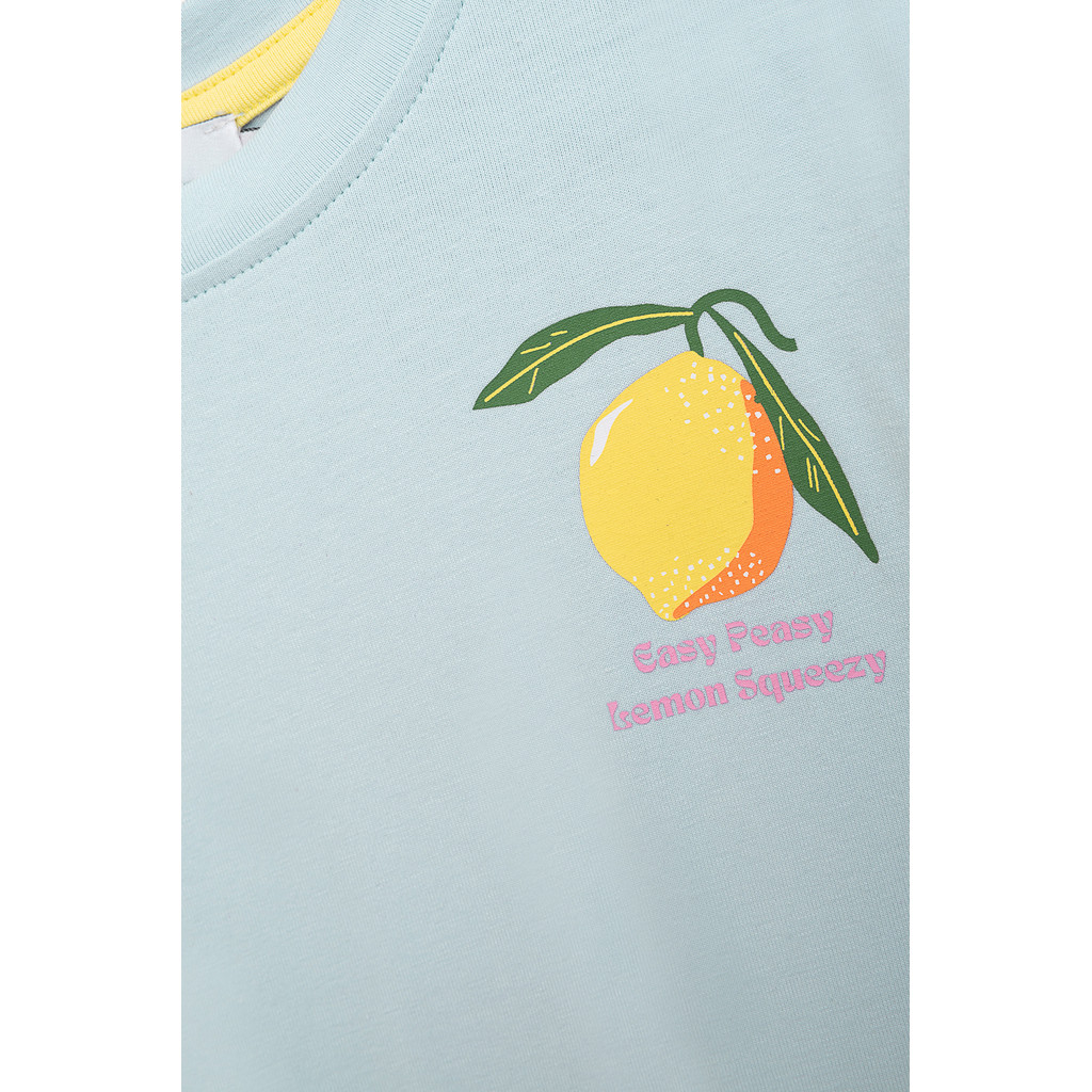 Mit seinem fruchtigen Print und dem Spruch „easy peasy lemon squeezy“ bringt dieses Shirt sommerliche Leichtigkeit in den Kleiderschrank. Die süße Zitrone auf weichem Baumwollstoff macht es zum perfekten Begleiter für enspannte Tage voller Spaß und Spiel