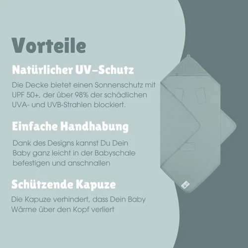 -Die emma & noah UV-Einschlagdecke schützt Dein Baby zuverlässig vor schädlicher Sonnenstrahlung mit einem UV-Schutz von 50+