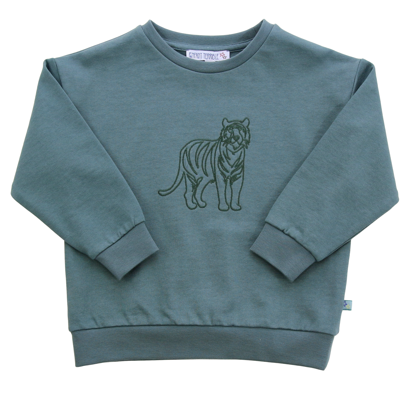 Cool, bequem und wild – dieses lässige Sweatshirt in dunkelgrün begeistert mit seiner hochwertigen Tigerstickerei auf der Front.