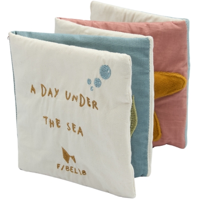 Das Stoffbuch „Meer“ begleitet Bär und Hase auf einem Unterwasserabenteuer.