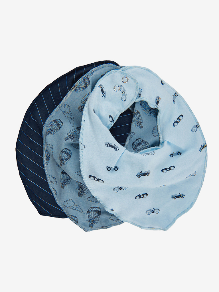3er-Pack mit Bandana-Latz. Das Pack besteht aus 3 Bandana-Lätzchen mit Allover-Druck, die aus Bio-Baumwolle gefertigt sind. Sie haben verstellbare Druckknöpfe am Hals. Zertifiziert nach OEKO-TEX® STANDARD 100 Zert. Nr. 2276-364 DTI.