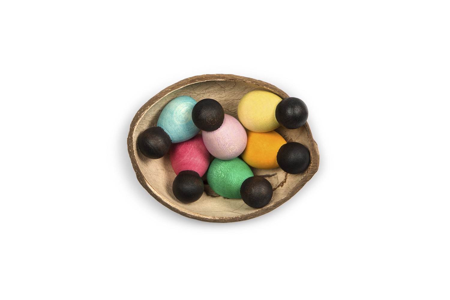 Enthält 6 kleine Nins und 1 Kokosnussschale.
