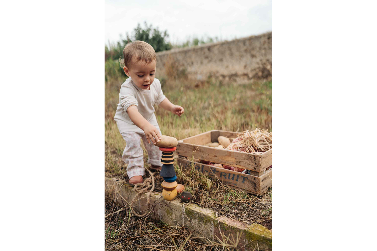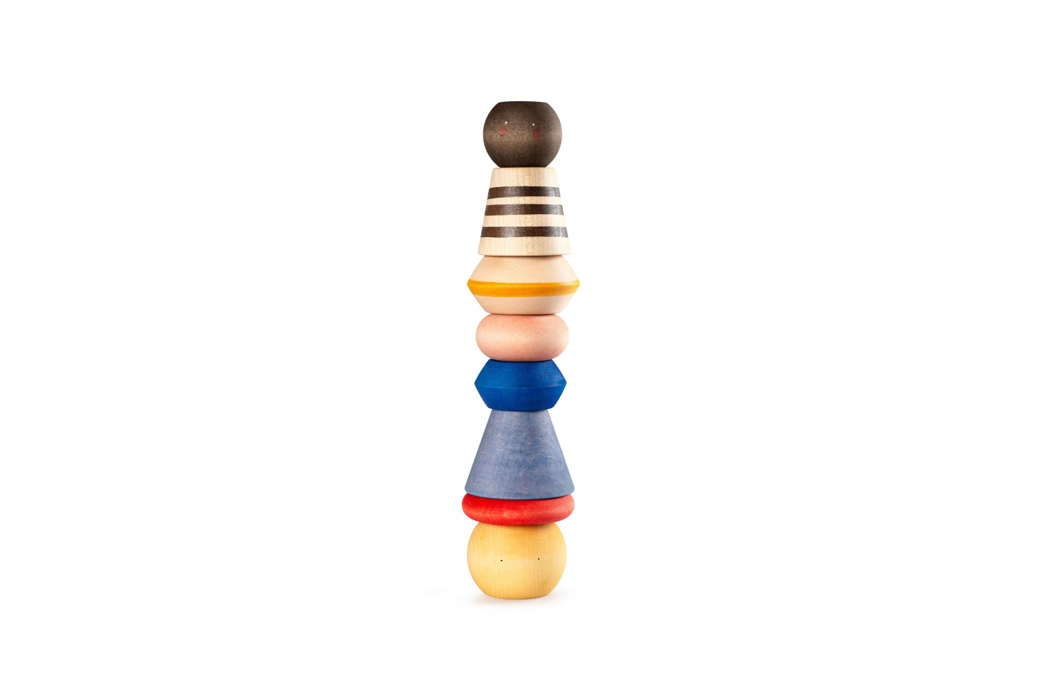 Unzählige Kombinationsmöglichkeiten für diesen Stapelturm! Farbenfroh und wunderschön handgefertigt – jede Bewegung macht Spaß. Hast du seine kleinen Augen gesehen? Lass deiner Fantasie freien Lauf und erschaffe eigene Gesichter und Figuren!