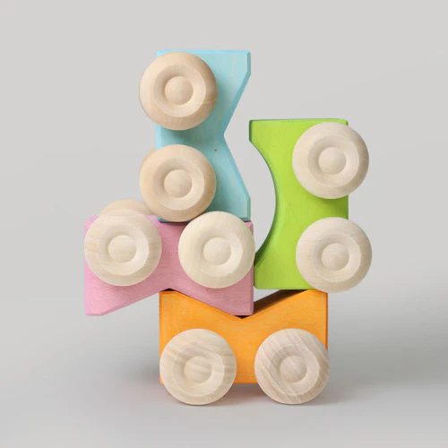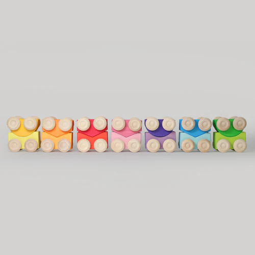 Unsere Stapel-Autos verbinden zwei große Themen des kindlichen Spielens: Sie lassen sich aufeinander stapeln und sie können rollen. Außerdem können sie auch mit anderen Elementen bebaut werden und diese dann transportieren. Durch die unterschiedlichen Farbpaare und Formvarianten werden kleine Kinder bereits an Farbharmonien und das Prinzip von Stück und passendem Gegenstück herangeführt. Holzart: Linde farblich lasiert, Räder: Ahorn Länge: 9 cm Breite: 5,1/5,2 cm Durchmesser Räder: 4 cm