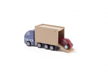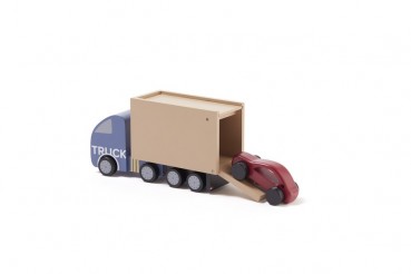 Ein LKW aus Holz mit viel Platz für Autos aus der Aiden-Serie von Kids Concept. Natürlich können auch andere Dinge damit transportiert werden. Der Anhänger hat zwei Öffnungen, die ein fantasievolleres Spiel fördern. Die oberen Abdeckung des Laderaums kann abgenommen werden. So gibt es sogar Platz für den Teddy! Einfach zu schließende Hintertür mit Magnetschloss. Der Anhänger kann abgekoppelt werden.