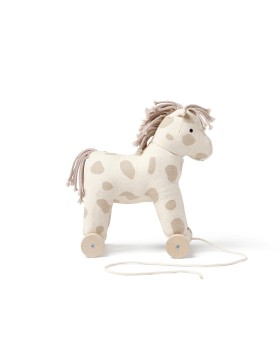 Dotty, ein Zugpferd aus strapazierfähigem Baumwollstoff mit Polka-Dot-Muster und weicher Mähne Schweif ist ein toller Freund zum Spielen und Kuscheln. Mit der Schnur lässt sich Dotty leicht spazieren ziehen und hilft Kindern, Gleichgewicht und Koordination zu trainieren. Wenn die Räder abgenommen werden, kann Dotty zu einem weichen Kuscheltier werden, das sich für ruhigere Momente oder zum fantasievollen Spielen eignet. Dotty ist leicht zu tragen und kann auf kleine Abenteuer gehen oder auf dem Regal sitzen, wenn die Spielzeit vorbei ist. Ein zuverlässiger Freund, der sowohl zum Spielen als auch zum Ausruhen bereit ist.