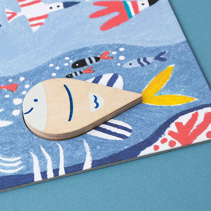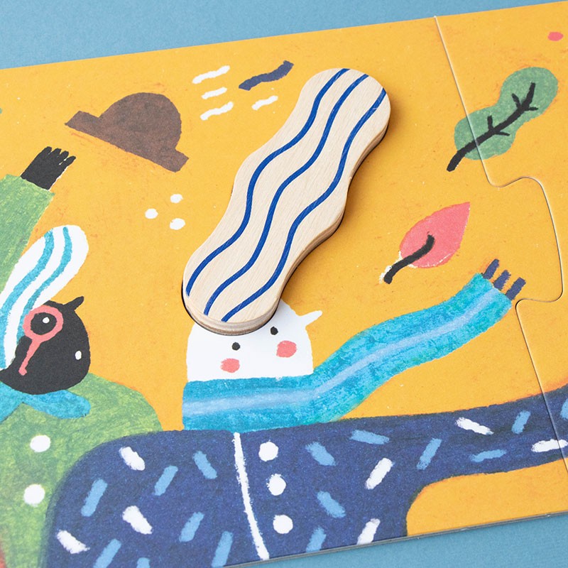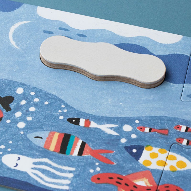 Ist es der Mond oder ein Boot, eine Wolke oder eine Raupe, ein Fisch oder ein Wassertropfen? Ein Spiel für die Fantasie! Setzen Sie die Puzzles zusammen und legen Sie die Holzteile ein.