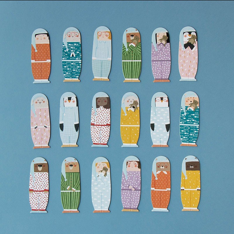 Ein Spiel, das auf drei verschiedene Arten gespielt werden kann:· GedächtnisspielMit allen Charakteren in ihren Betten musst du die Charaktere im gleichen Schlafanzug finden.· Die FamilienMit den hausförmigen Karten ist das Ziel für jeden Spieler, alle Mitglieder einer Familie in einem einzigen Zug zu finden.· Das Monster unter dem Bett Das Ziel ist herauszufinden, wo sich das Monster unter dem Bett versteckt. In diesem Spiel brauchen wir einen Hauptspieler, der dafür verantwortlich ist, ein Monster zu verstecken und die Fragen der anderen Spieler mit „Ja“ oder „Nein“ zu beantworten, zum Beispiel: „Das Monster unter dem Bett ist im Bett eines Pinguins?