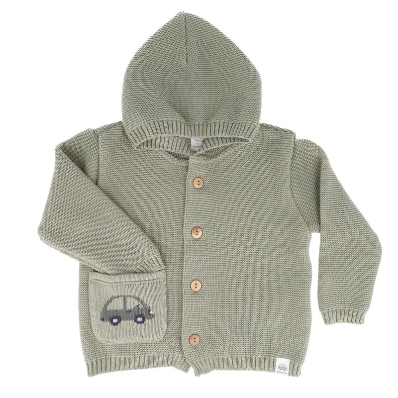 Die maximo GOTS Baby Boy-Strickjacke in grün überzeugt mit klarer Optik und hohem Tragekomfort. Die strukturierte Strickware mit Kapuze, Ripp-Abschlüssen und Holzknöpfen sorgt für einen bequemen Sitz. Eine aufgesetzte Tasche mit Auto-Motiv setzt einen kindgerechten Akzent. Unifarbig und vielseitig kombinierbar – ideal für Frühling und Sommer.