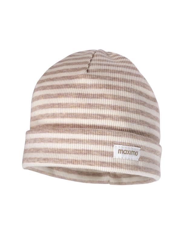 Maximo GOTS NEWBORN-Mütze, Feinrippjersey geringelt, Umschlagrand
