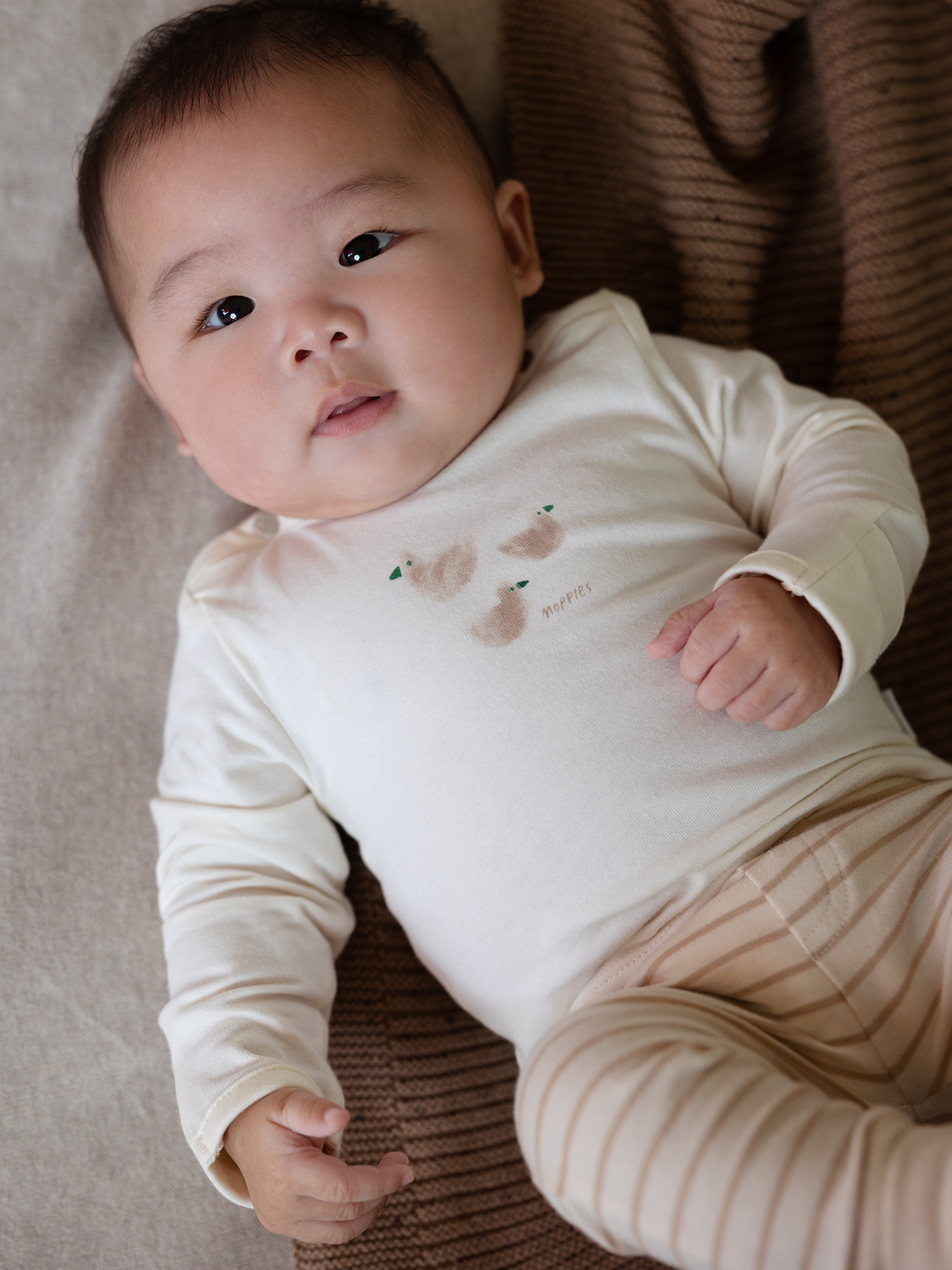 Die Ärmelbündchen lassen sich umklappen und werden zu Handschuhen. Das macht es warm und gemütlich für Ihr Baby und verhindert, dass es sich selbst kratzt. Ein tröstlicher Gedanke. Das Hemd trägt das Soft Feel-Label, was bedeutet, dass es besonders weich für die empfindliche Haut des Babys ist.
