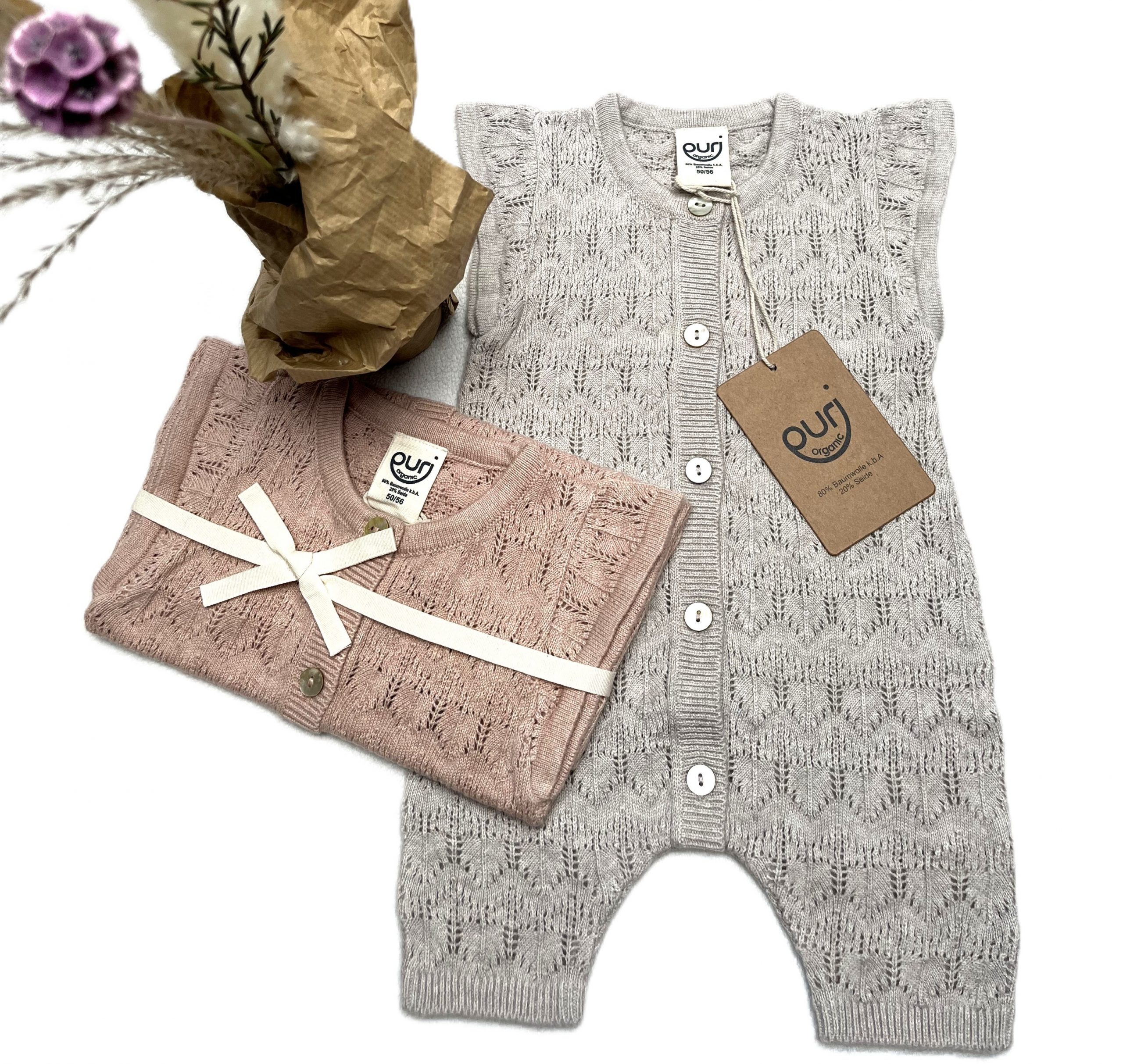Dieser schöne Overall mit langen Beinen von Puri organic fühlt sich durch den tollen Materialmix ganz weich an.
