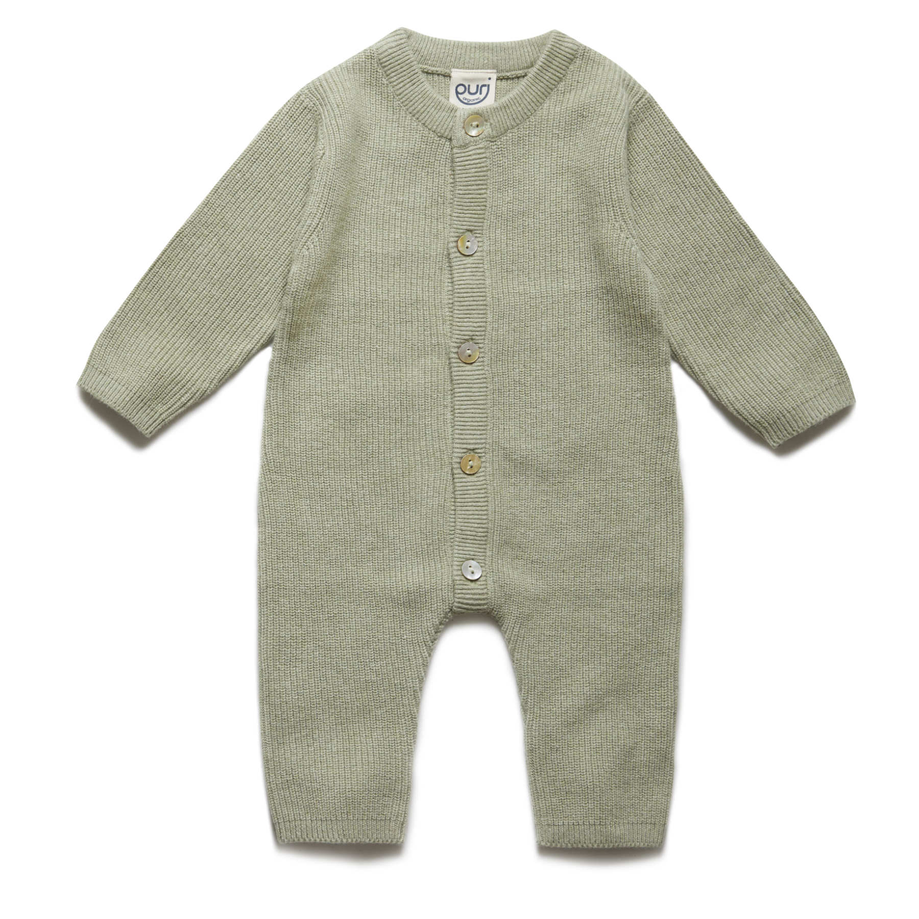 Dieser schöne Overall im Perlfangstrick von Puri organic fühlt sich durch den tollen Materialmix ganz weich an.