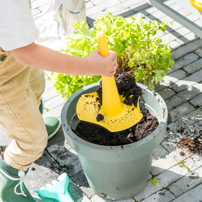4-in-1-Werkzeug: Schaufel, Sieb, Rechen und Wasser- oder Sandtrichter