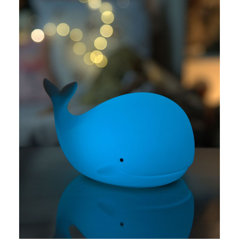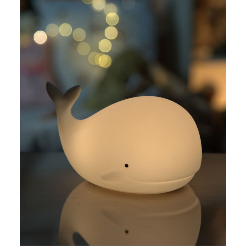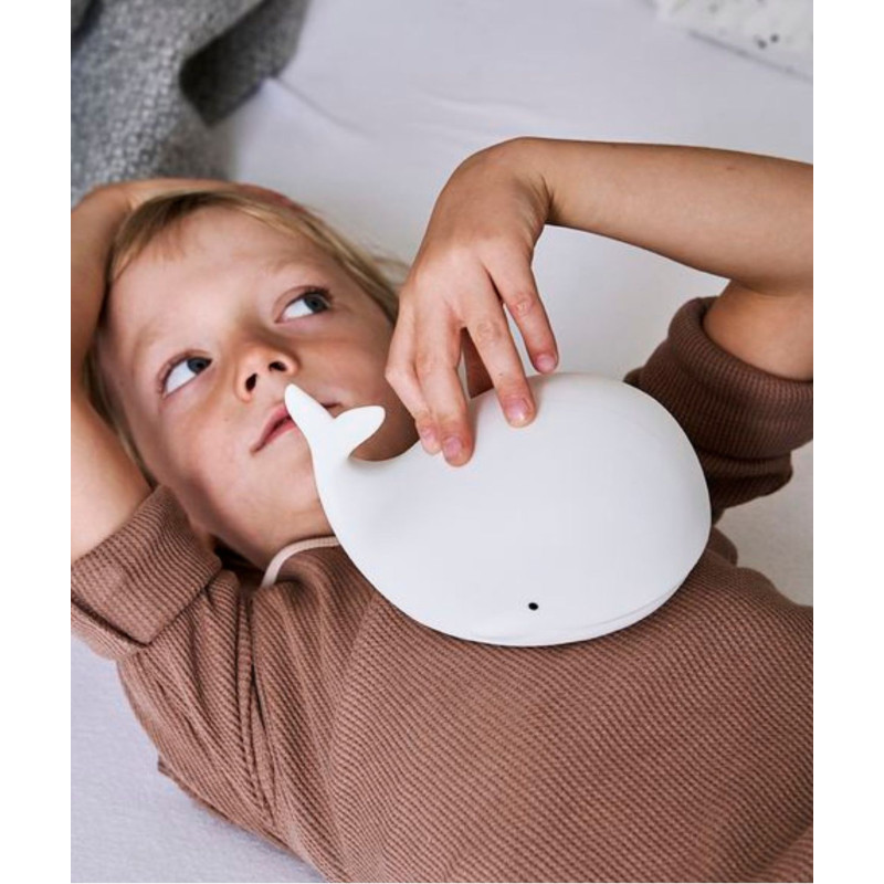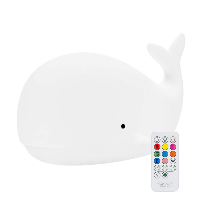 Die Nachtlampe Whale von Rabbit & Friends mit Fernbedienung erhellt die Umgebung mit einem warmen und freundlichen Licht. Seine Anwesenheit gibt Kindern nachts ein Gefühl der Sicherheit und erleichtert es den Eltern, sie zu betreuen und zu betreuen.