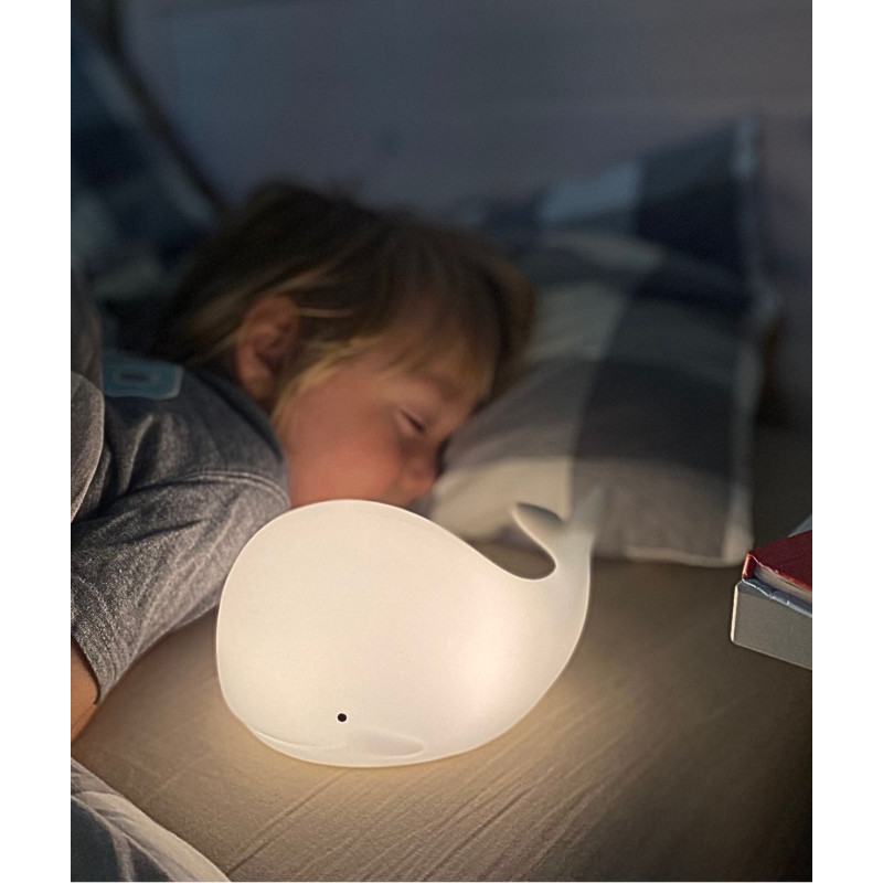 Er eignet sich hervorragend als Begleiter bei abendlichen Spielen und zaubert dem Kind ein Lächeln ins Gesicht. Es ermöglicht Ihnen, vor dem Schlafengehen Märchen zu lesen und gleichzeitig beruhigende Gesellschaft und einen ruhigen, sicheren Schlaf zu gewährleisten. Nachts erleichtert es die Betreuung der Kleinsten, das Wickeln und das Stillen. Etwas ältere Kinder werden als tragbare Beleuchtung auf dem Weg durch den dunklen Flur zum Badezimmer oder Elternschlafzimmer eingesetzt. Der Wal ist dank seiner USB-Typ-C-Aufladung der perfekte Reisebegleiter.