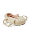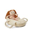 Puppenkorb aus Bouclé mit gestricktem Blumenmuster innen