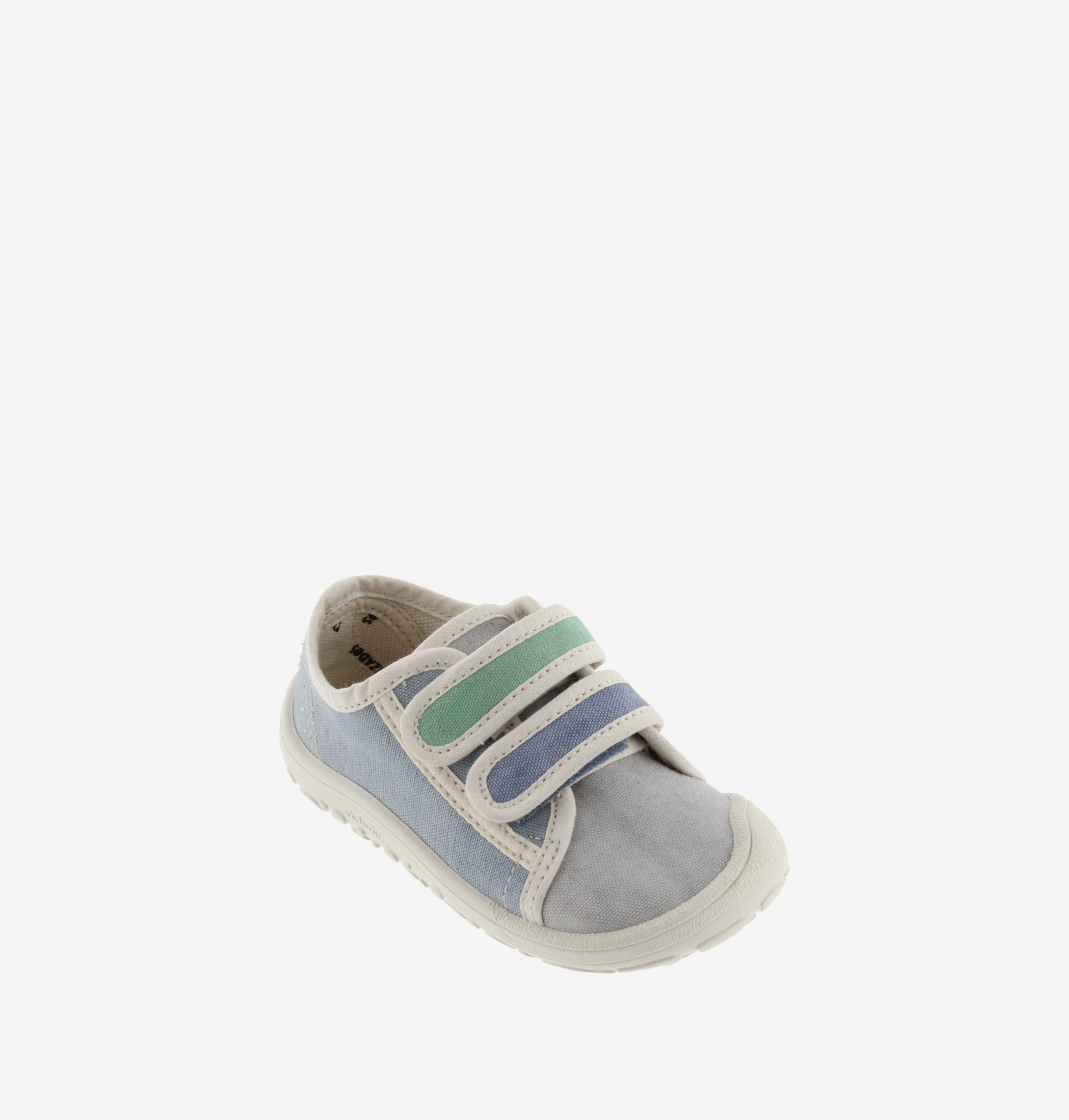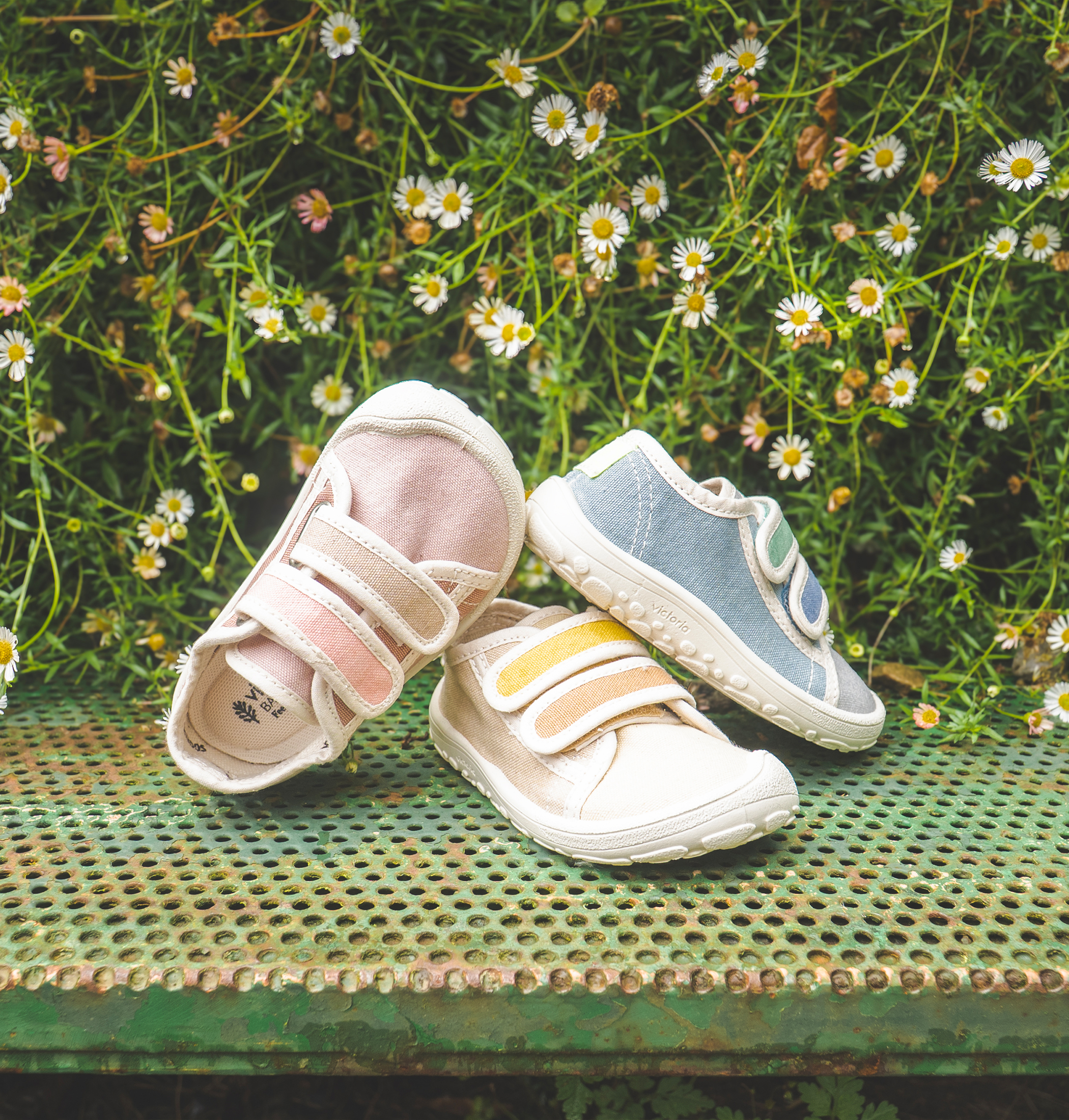 Flexibel, ohne Verstärkungen, mit weiter Passform und geringem Gewicht sie ermöglichen die freie Bewegung des Fußes, ohne ihn zu verformen. Ein Schuh, der sowohl umweltfreundlich ist als auch die natürliche Fußentwicklung der Kleinsten respektiert.