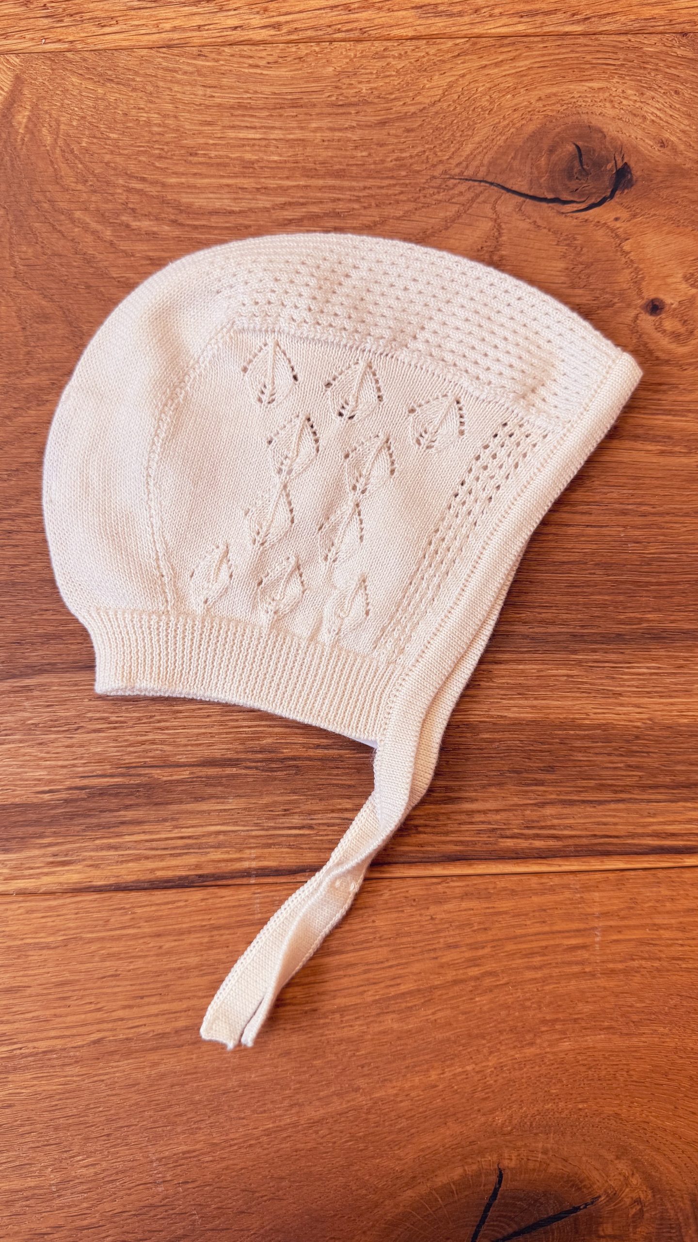 Haube aus weicher und atmungsaktiver Bio-Baumwolle gestrickt, ideal für Jungen und Mädchen bis 24 Monate. Die Haube hat ein Band, das man unter dem Kinn binden kann. Nahtlos hergestellt für maximalen Komfort Ihres Babys.